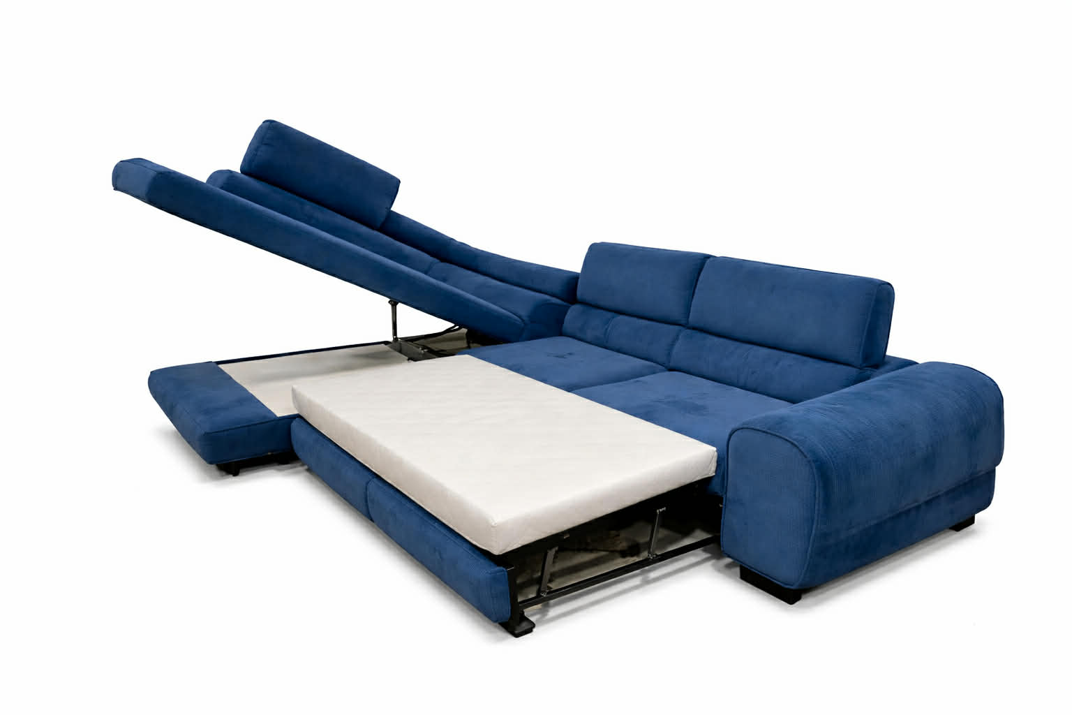 Narożnik STRUKS to duży, wygodny model stworzony z myślą o osobach ceniących przestrzeń, komfort oraz solidne rozwiązania konstrukcyjne. Doskonale sprawdzi się w salonach, gdzie narożnik pełni centralną rolę wypoczynkową. Model posiada funkcję spania, zapewniającą wygodną powierzchnię do snu również przy regularnym użytkowaniu. Zastosowane sprężyny bonellowe gwarantują trwałość, stabilne podparcie ciała oraz wysoki komfort siedzenia i leżenia. Dodatkowym atutem jest pojemnik na pościel, który umożliwia praktyczne przechowywanie tekstyliów. Narożnik wyposażony jest w regulowane zagłówki, dzięki którym każdy użytkownik może dopasować pozycję siedzenia do własnych potrzeb. Konstrukcja umożliwia ustawienie narożnika w wersji prawej lub lewej, co pozwala idealnie dopasować go do układu wnętrza.